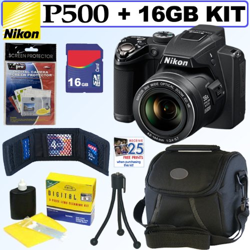 !±8±Nikon Coolpix P500 12.1 MP CMOS Digital Camera (Black) + 16GB Accessory Kit